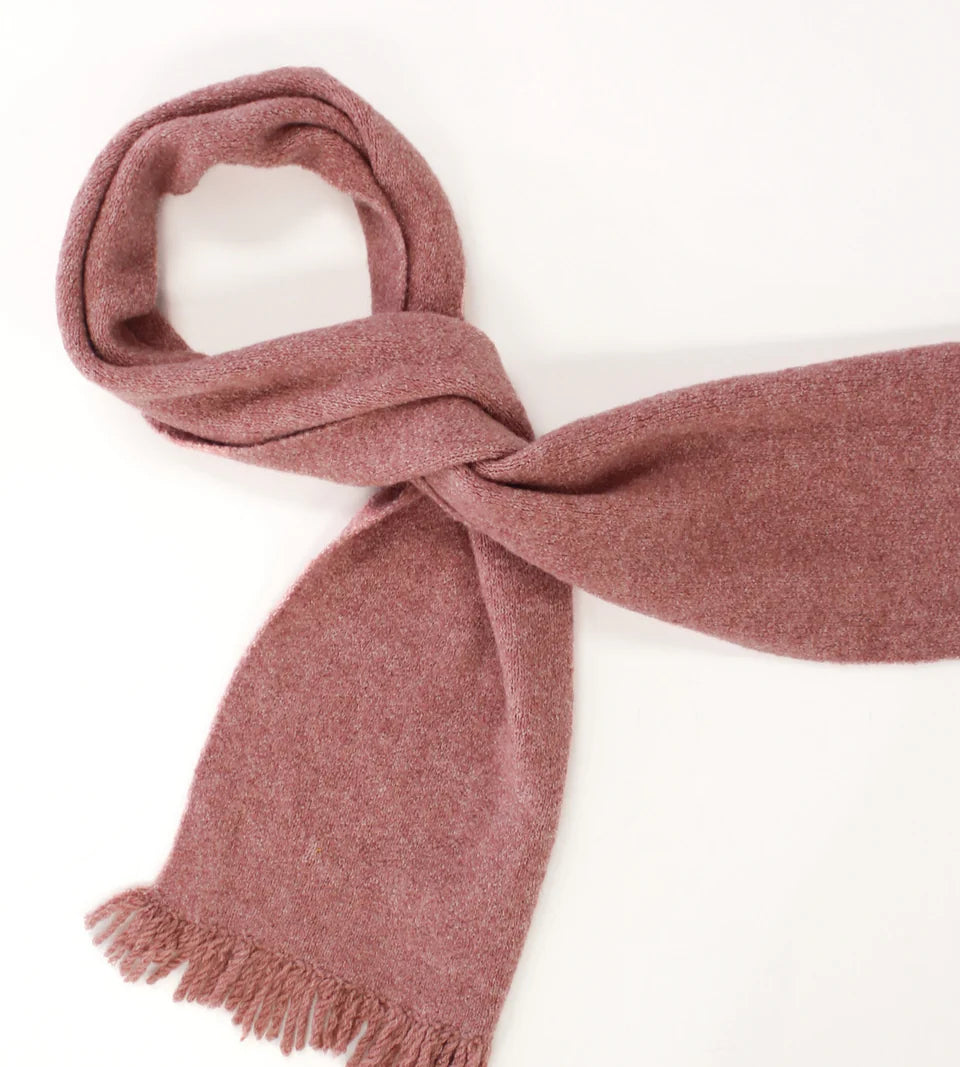 A beautiful, one-of-a-kind dusty rose scarf, created from ultra-soft fabric and finished with a fun fringed edge.