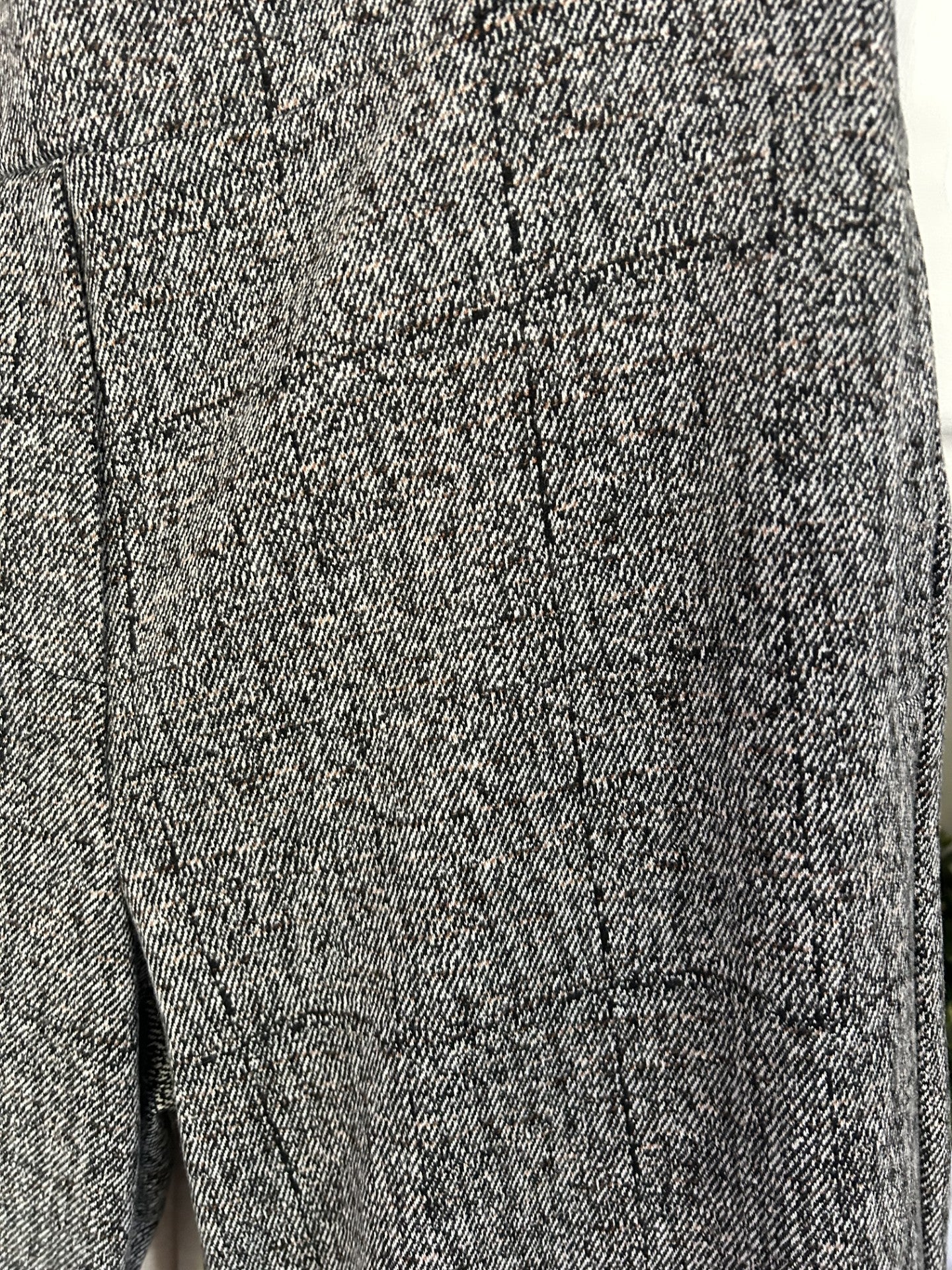 Polyester/rayon/elastane. Charcoal/black multi